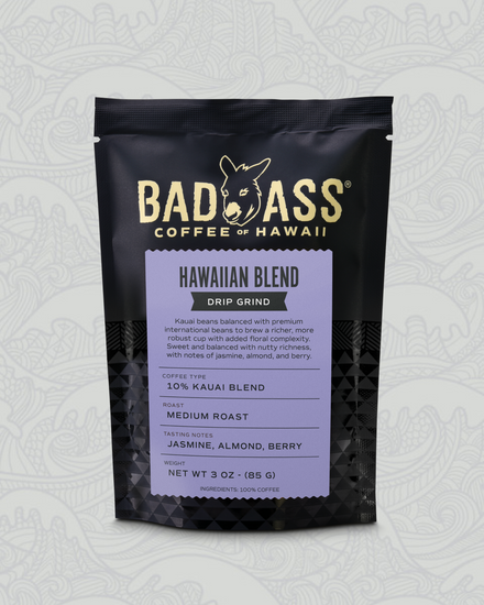 Kaua'i beans balanced with premium international beans to brew a richer, more robust cup with added floral complexity. Sweet and balanced with nutty richness, with notes of jasmine, almond, and berry.