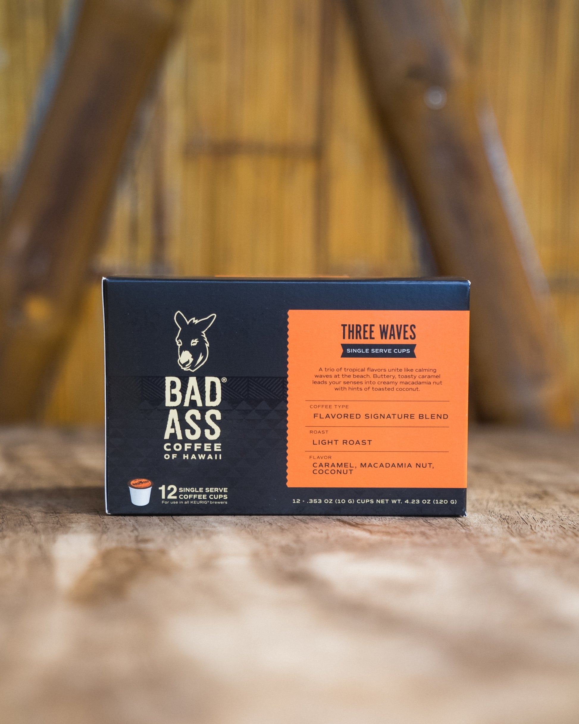 Bad Ass Coffee of Hawaii single-serve cups ideal for your single-serve brewer.